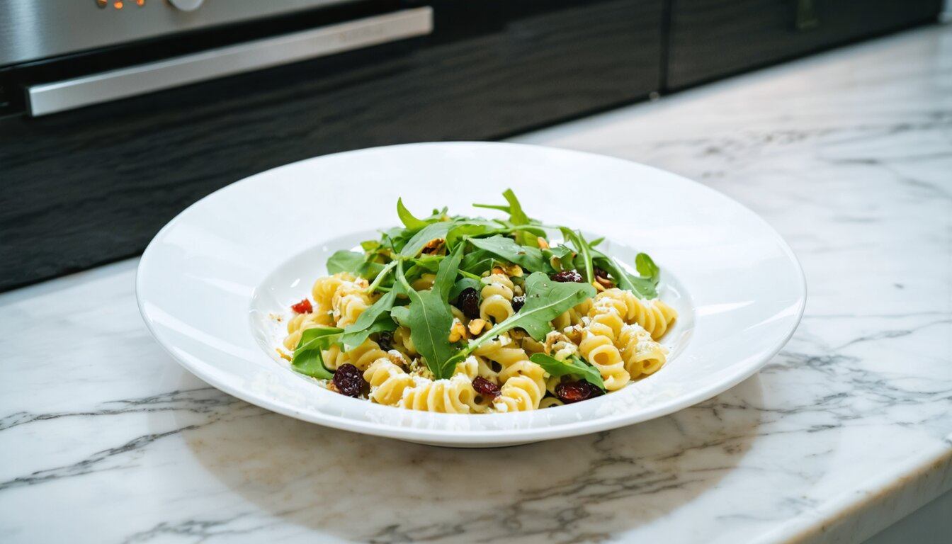 Pistachio and Cranberry Goat Cheese Cavatappi with Arugula