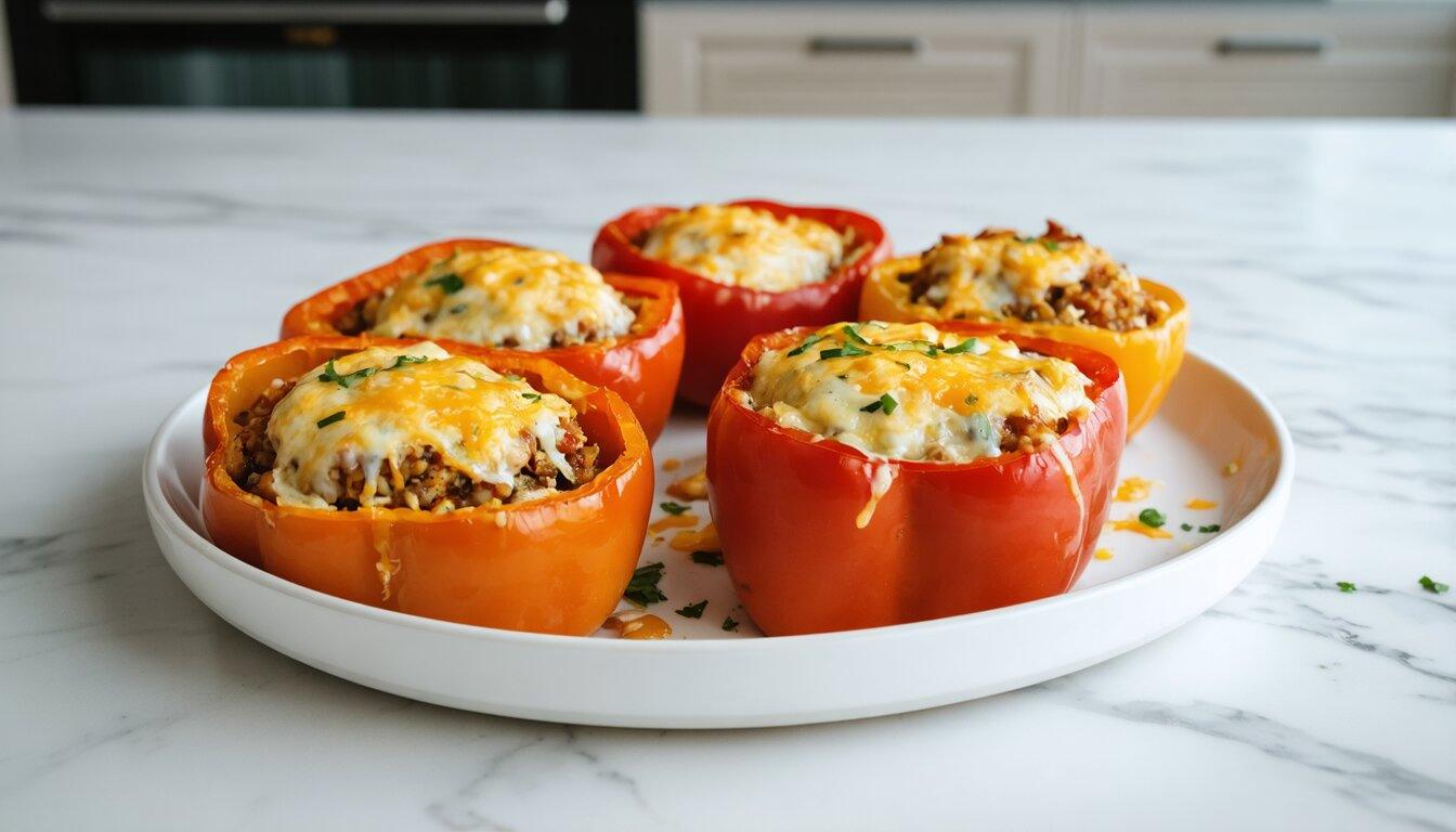 Cheesy Farro-Stuffed Bell Peppers with Cheddar