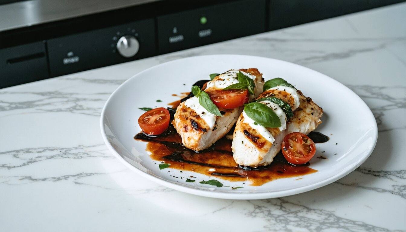 Air-Fried Tomato Basil Mozzarella Stuffed Chicken with Balsamic Reduction