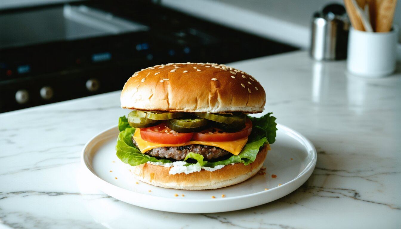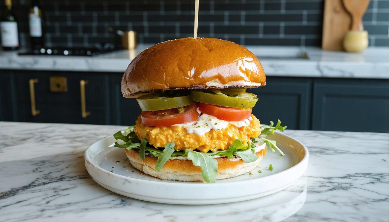 Pimento Cheese and Fried Green Tomato Burger with Remoulade