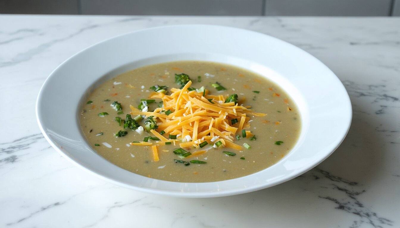 Silky Cream of Broccoli Soup with Aged Cheddar and Chives