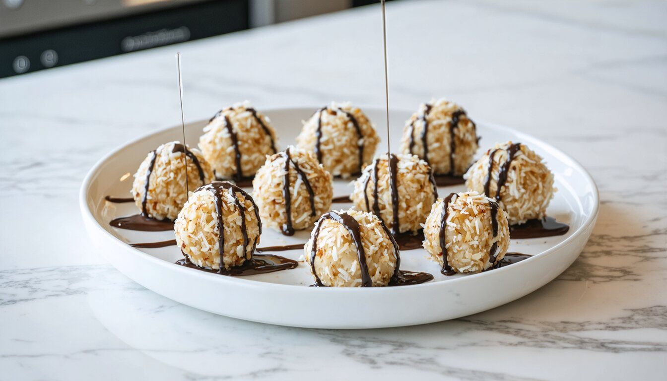 Coconut Almond Energy Bites with Dark Chocolate Drizzle