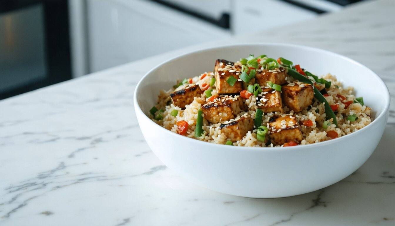 Teriyaki Tofu Quinoa Bowl with Sesame Ginger Dressing