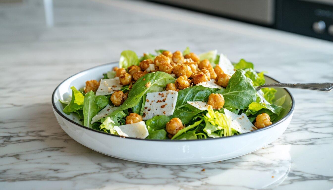 Vegan Caesar Salad with Crispy Chickpea Croutons