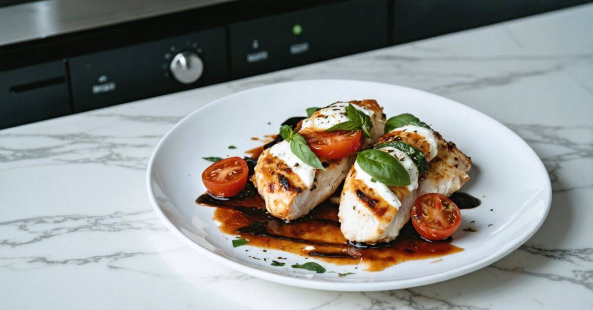 Indulge in a delightful culinary experience with Air-Fried Tomato Basil Mozzarella Stuffed Chicken. Tender chicken breasts are filled with juicy tomatoes, fragrant basil, and gooey mozzarella. A drizzle of tangy balsamic reduction adds a harmonious blend of savory and sweet flavors. The air-frying method creates a crispy exterior with minimal oil, offering a healthier alternative to traditional frying methods. This dish provides a flavorful meal that looks and tastes great, making it a wonderful choice for any occasion.