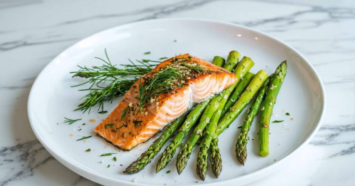Enjoy a healthy and delicious meal with baked salmon and asparagus, featuring tender fish and crisp-tender veggies.
