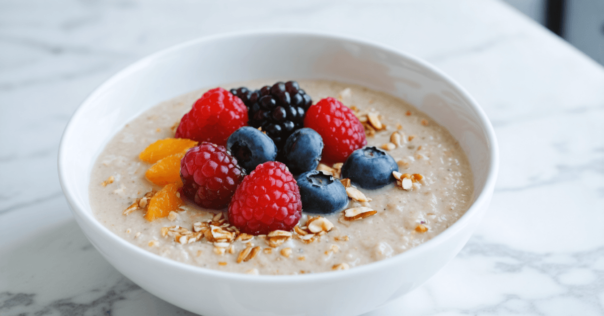 - Serve the porridge in bowls, garnished with chopped nuts and fresh berries.