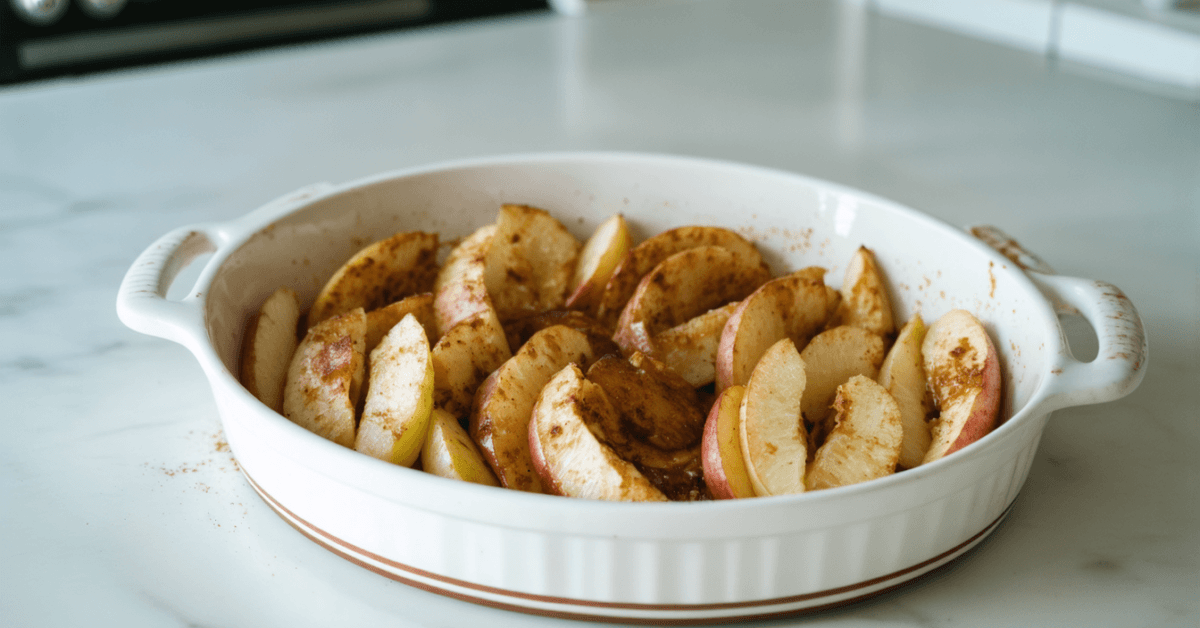 - Arrange the apple slices in a single layer in a baking dish.