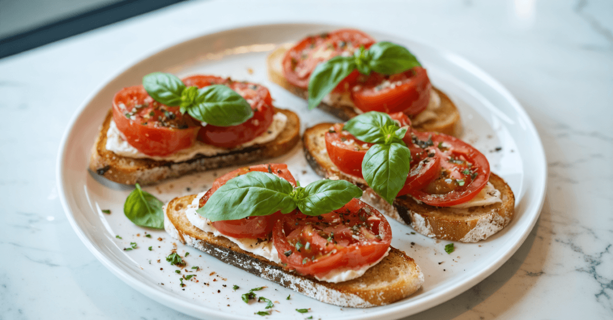 - Spoon the tomato mixture evenly over each toasted bread slice.