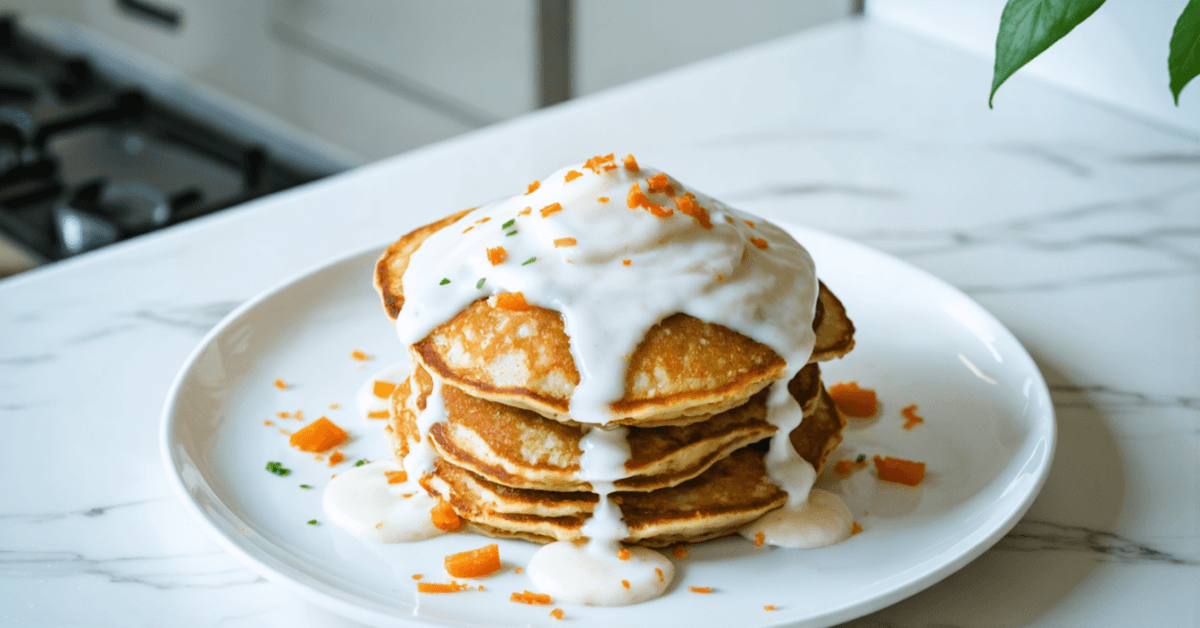 Treat yourself to a unique blend of flavors with these carrot cake pancakes. Combining grated carrots, warm spices, and a touch of sweetness, these pancakes offer a delightful breakfast or brunch experience. Cream cheese icing completes the dish, merging all the familiar tastes of carrot cake into a soft, fluffy pancake. Perfect for anyone wanting to add a creative twist to their morning meals.
