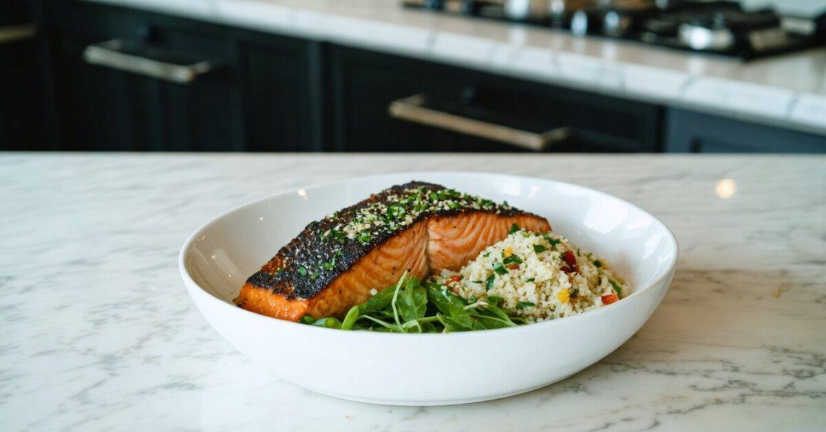 - Place a blackened salmon fillet on top of the quinoa in each bowl.