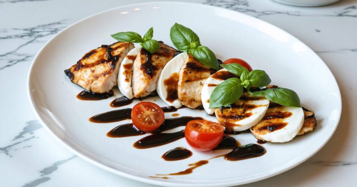 Enjoy a flavorful twist on classic caprese with this chicken dish, featuring a rich balsamic reduction.
