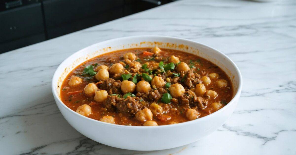 Chickpea and Meat Stew, or Lahme bil Hummus, is a traditional Middle Eastern dish filled with warm spices and rich flavors. Tender meat combines with creamy chickpeas and aromatic spices for a comforting meal, great for cool evenings. The slow cooking melds flavors, making the dish both flavorful and nourishing. Pair this stew with rice or pita bread for a truly delicious meal.