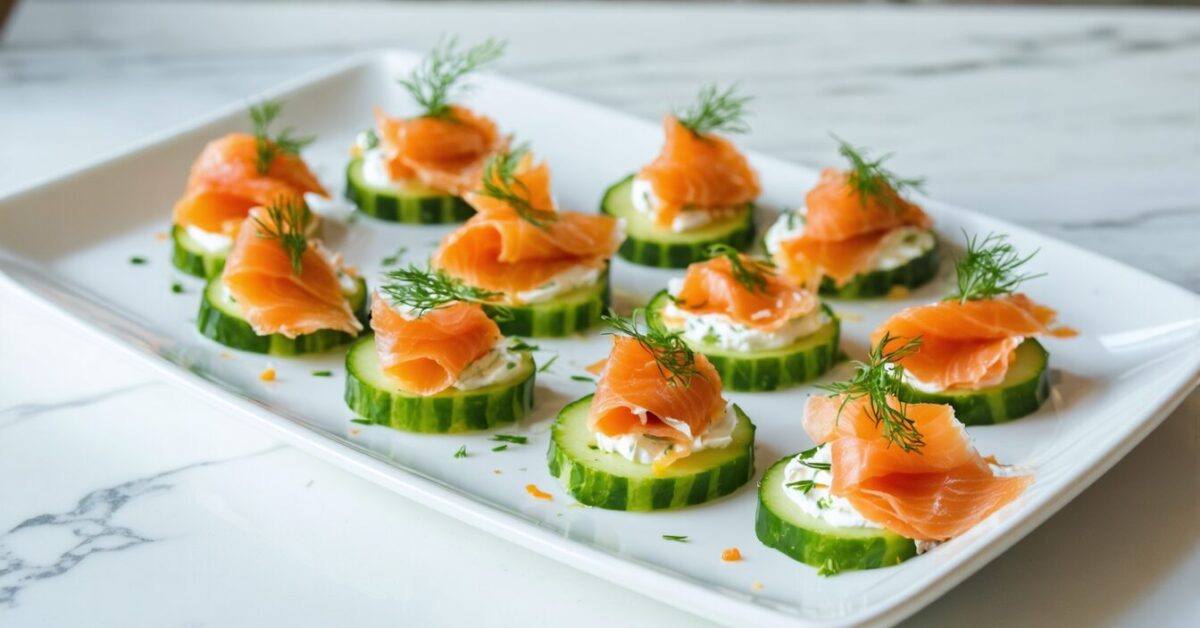 These cucumber bites pair herbed cream cheese with savory smoked salmon for a refreshing appetizer.