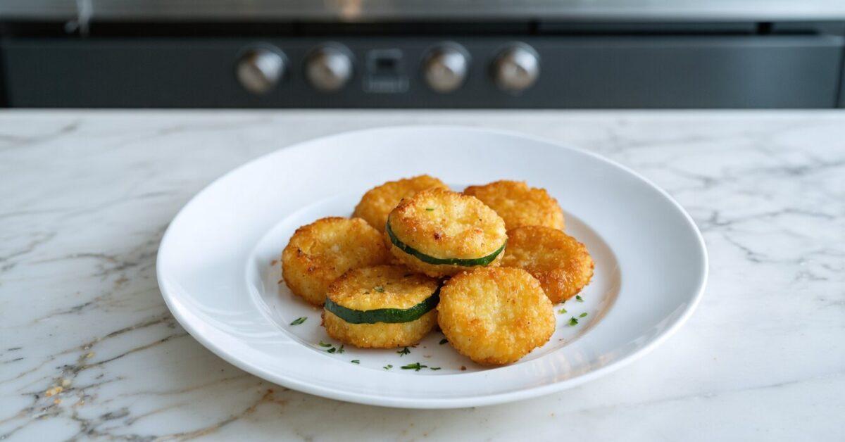 - Fry the zucchini slices until they are golden brown and crispy, approximately 2 to 3 minutes on each side.