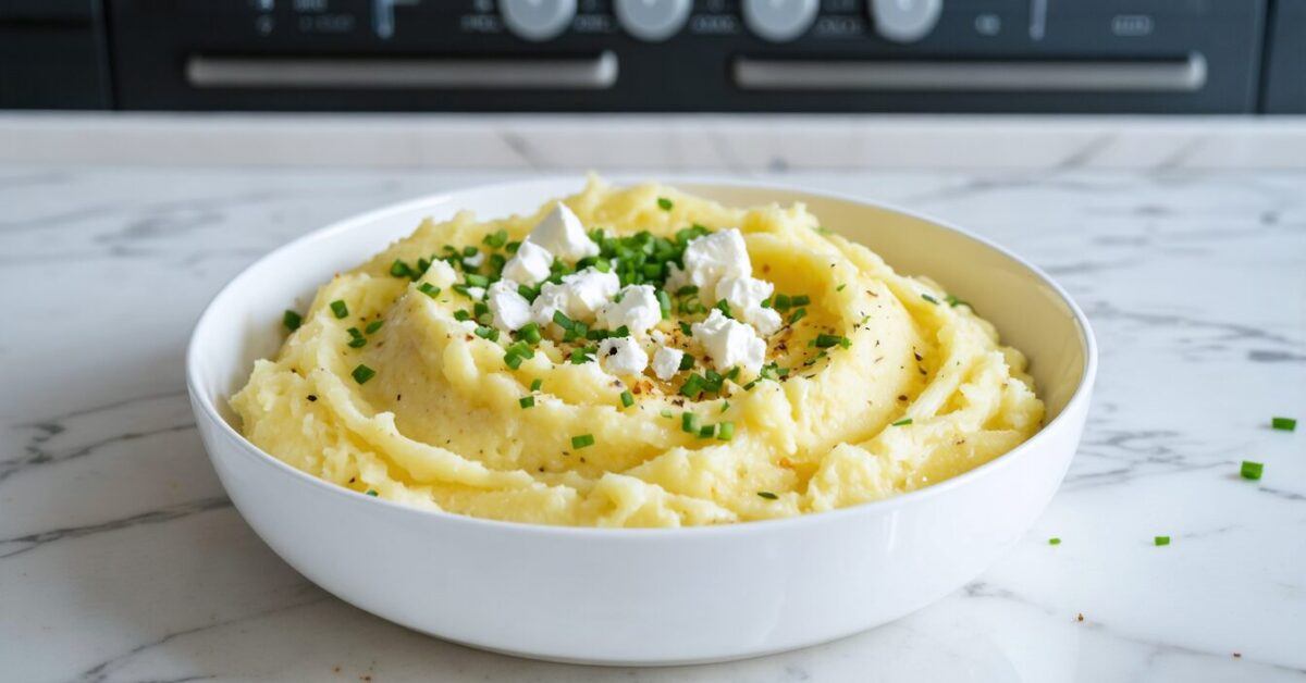 Smooth and creamy mashed potatoes infused with roasted garlic and tangy goat cheese offer a rich twist on a classic side dish.