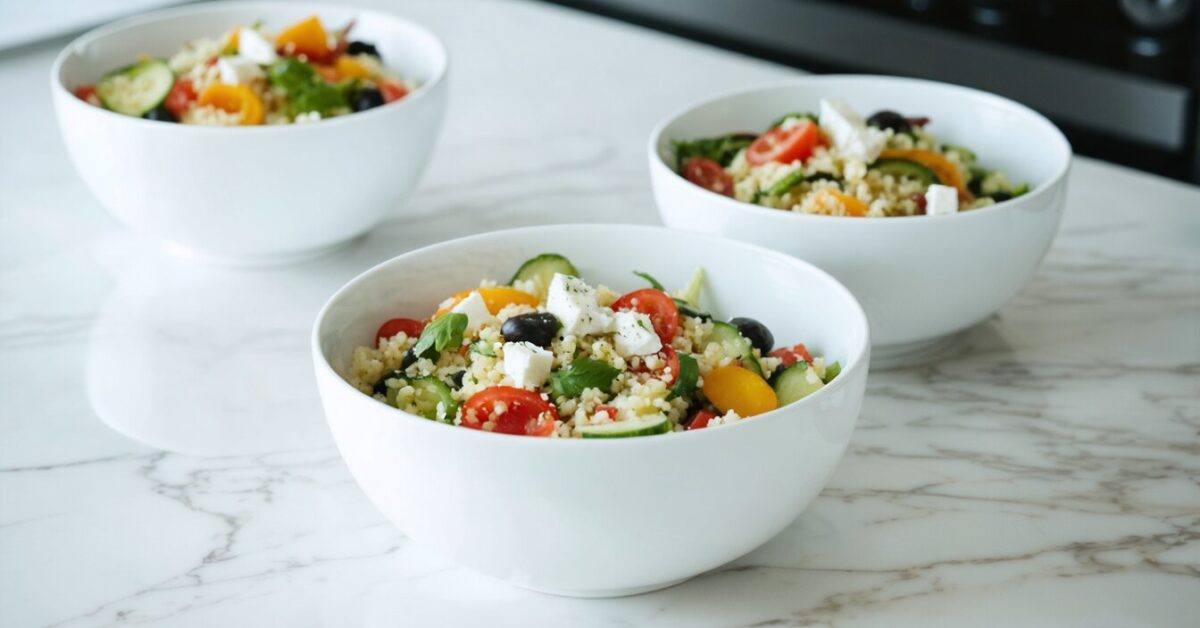Greek Salad Couscous Bowls bring together the fresh flavors of a Greek salad with the satisfying texture of couscous. This dish is suitable for a light lunch or dinner, offering a harmonious blend of vegetables, grains, and herbs. The combination of vibrant colors and rich flavors creates an appealing dish perfect for any mealtime. With a balance of textures and a refreshing taste, this recipe is a delightful option for those seeking a Mediterranean-inspired meal.