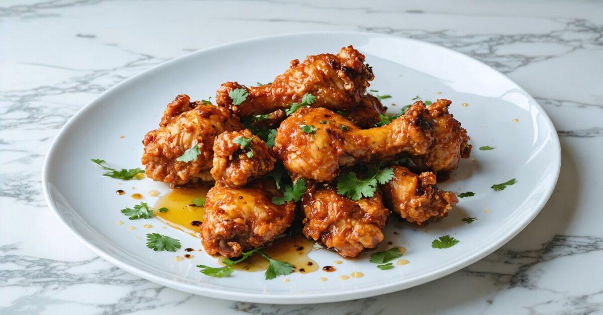 - Transfer the fried chicken to a paper towel-lined plate to drain excess oil. Drizzle with honey and sprinkle with chopped cilantro before serving.