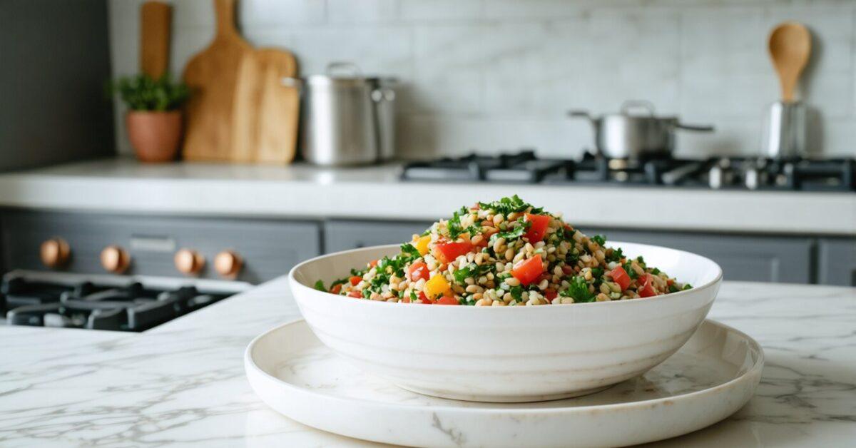 Lentil Tabbouleh with Parsley is a refreshing and nutritious salad dish that offers the earthy flavor of lentils alongside the vibrant freshness of parsley and classic Mediterranean notes. Serving as an excellent choice for a light lunch or a flavorful side, this dish is crafted by cooking lentils to the perfect tenderness, finely chopping fresh parsley, and blending them with a lemony dressing. The dish captivates with its lively colors, varying textures, and bright flavors that are both delicious and health-conscious.