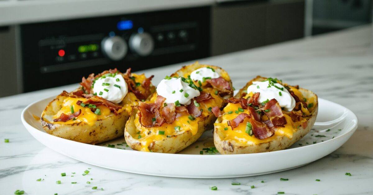 - Fill each potato skin with a portion of shredded cheddar cheese and crumbled bacon, then bake for an additional 5-10 minutes until the cheese has melted.