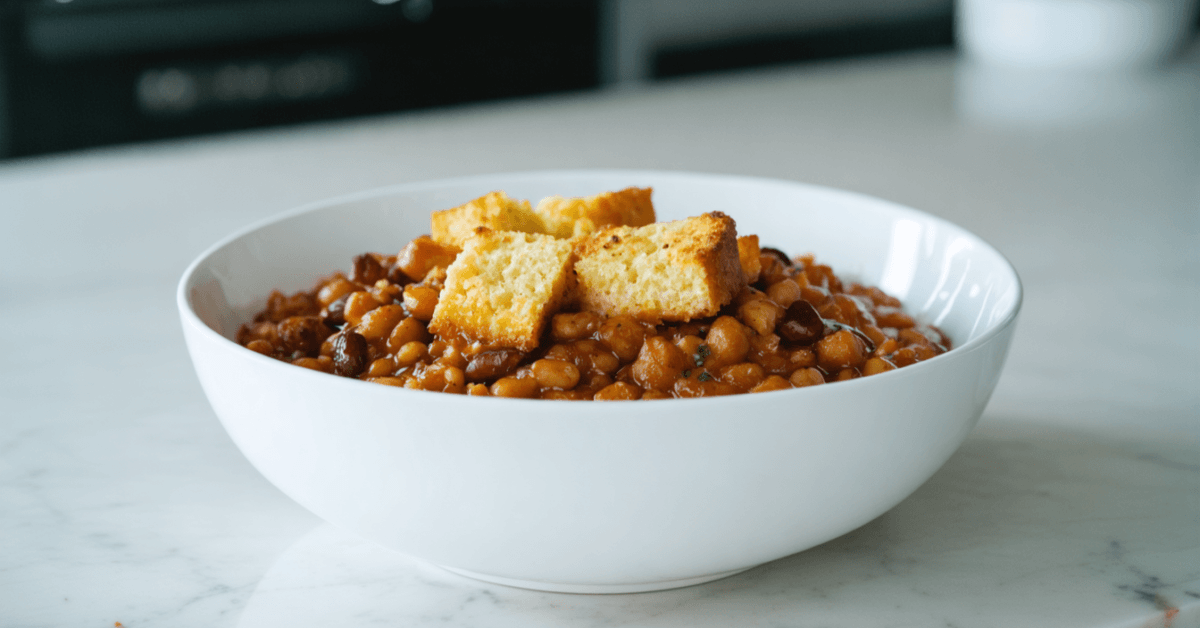 - Top each bowl of BBQ beans with cornbread croutons when serving.