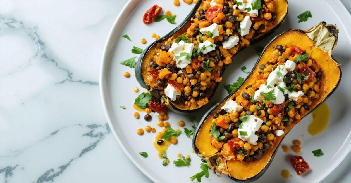 Enjoy a flavorful and nutritious Mediterranean-inspired dish with feta and lentil stuffed butternut squash.