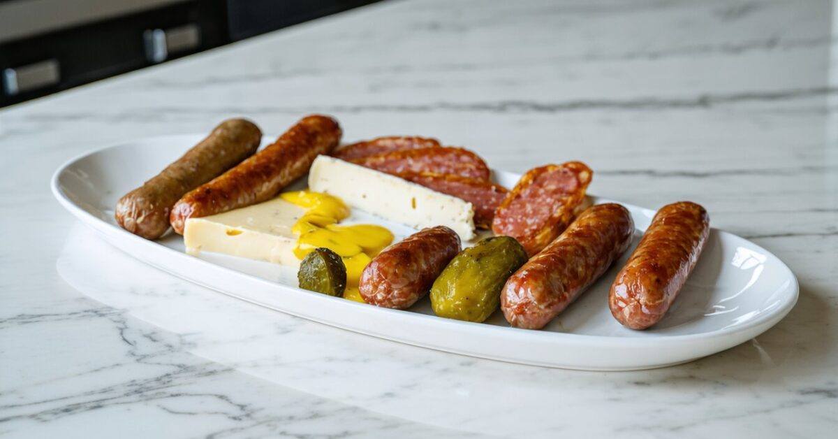 - Arrange the assorted sausages and cheeses on a large platter, ensuring a balanced and visually pleasing layout.