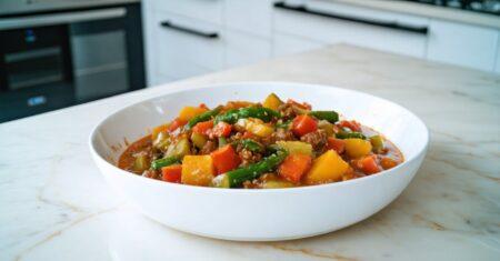 - In a skillet, cook the ground beef over medium heat until browned, breaking it up with a spatula. Add the onion and cook for 2 to 3 minutes until translucent.