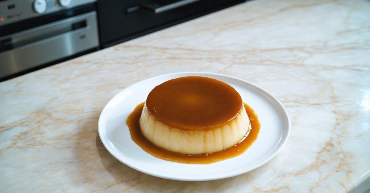 - Carefully pour the caramel into a flan mold, swirling to coat the bottom evenly. Set aside to cool slightly.