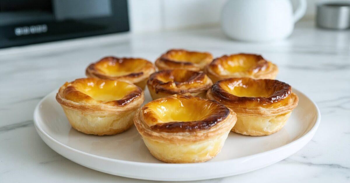 - Bake in the preheated oven for 15-20 minutes until the custard is set and the tops are caramelized to a golden color.