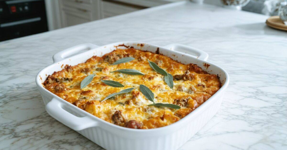 This savory Sausage Breakfast Casserole with Sage offers a hearty morning meal that combines the rich flavors of sausage, eggs, cheese, and sage. This casserole can be prepared the night before and baked in the morning, making it an uncomplicated meal choice. It’s an excellent option for a brunch gathering or a comforting breakfast at home.