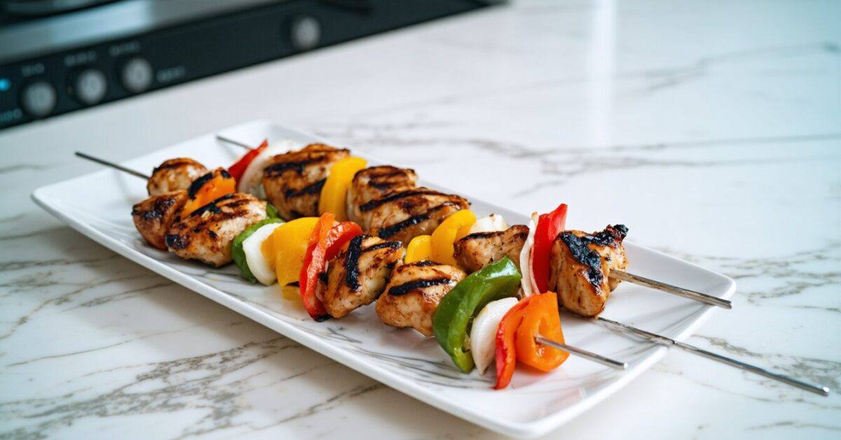 - Serve the grilled skewers hot with fluffy rice, fresh salad, and creamy garlic sauce.