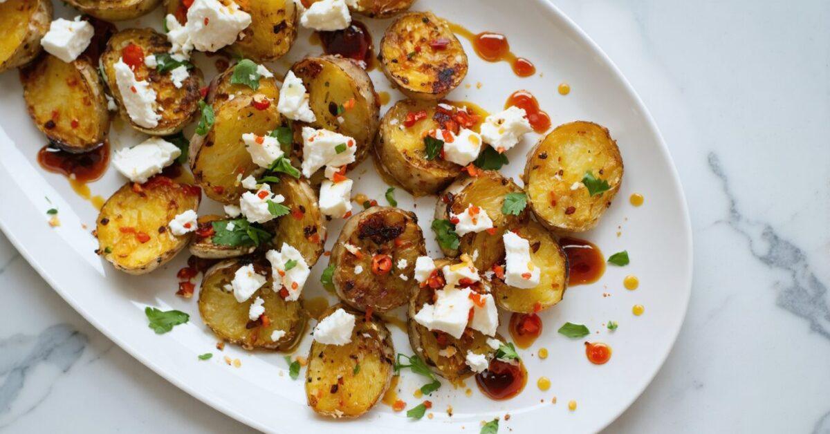 Crispy Smashed Potatoes with Feta, Chili Oil, and Herbs