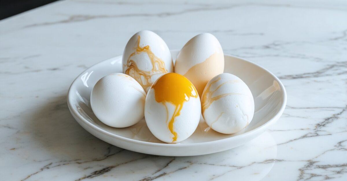 - Before serving, peel the eggs to reveal the marbled pattern created by the cracking process.