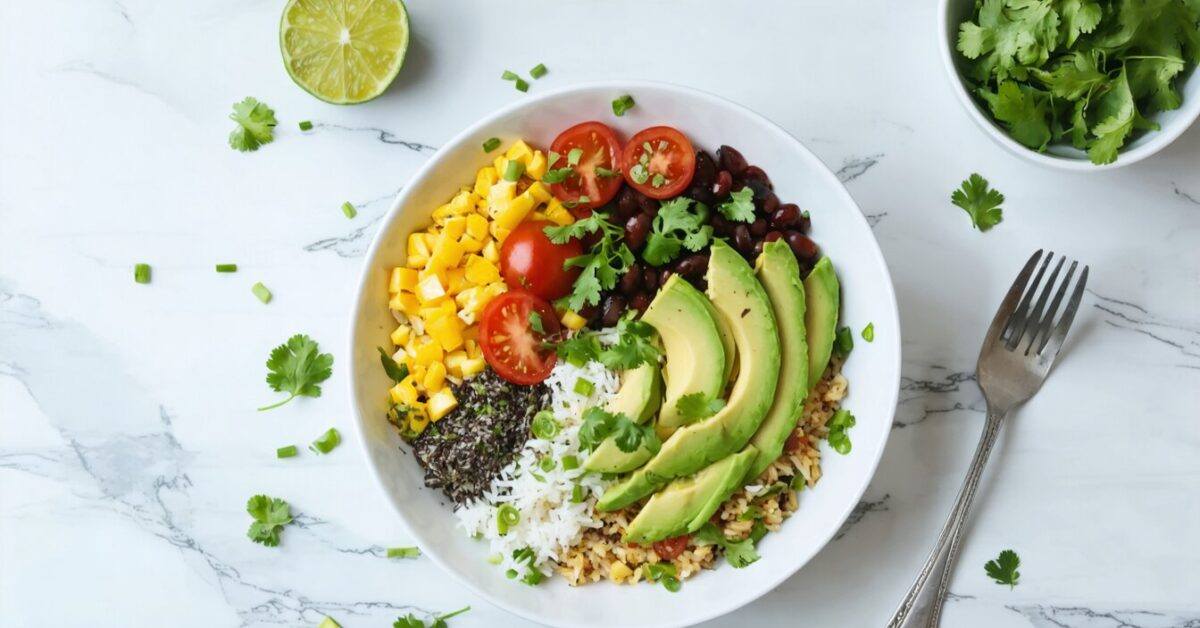The Vegan Burrito Bowl with Cilantro-Lime Rice is a lively and flavorful dish, combining fresh ingredients and zesty flavors into a wholesome meal. Featuring protein-rich black beans, refreshing cilantro-lime rice, creamy avocado, crisp vegetables, and zesty salsa, this bowl offers a delightful blend of textures and a nutritious option for lunch or dinner. The vibrant colors and diverse flavors make it a standout for anyone seeking a plant-based meal that is both nourishing and delicious. Enjoy the satisfying combination of flavors in every bite of this delectable Vegan Burrito Bowl.