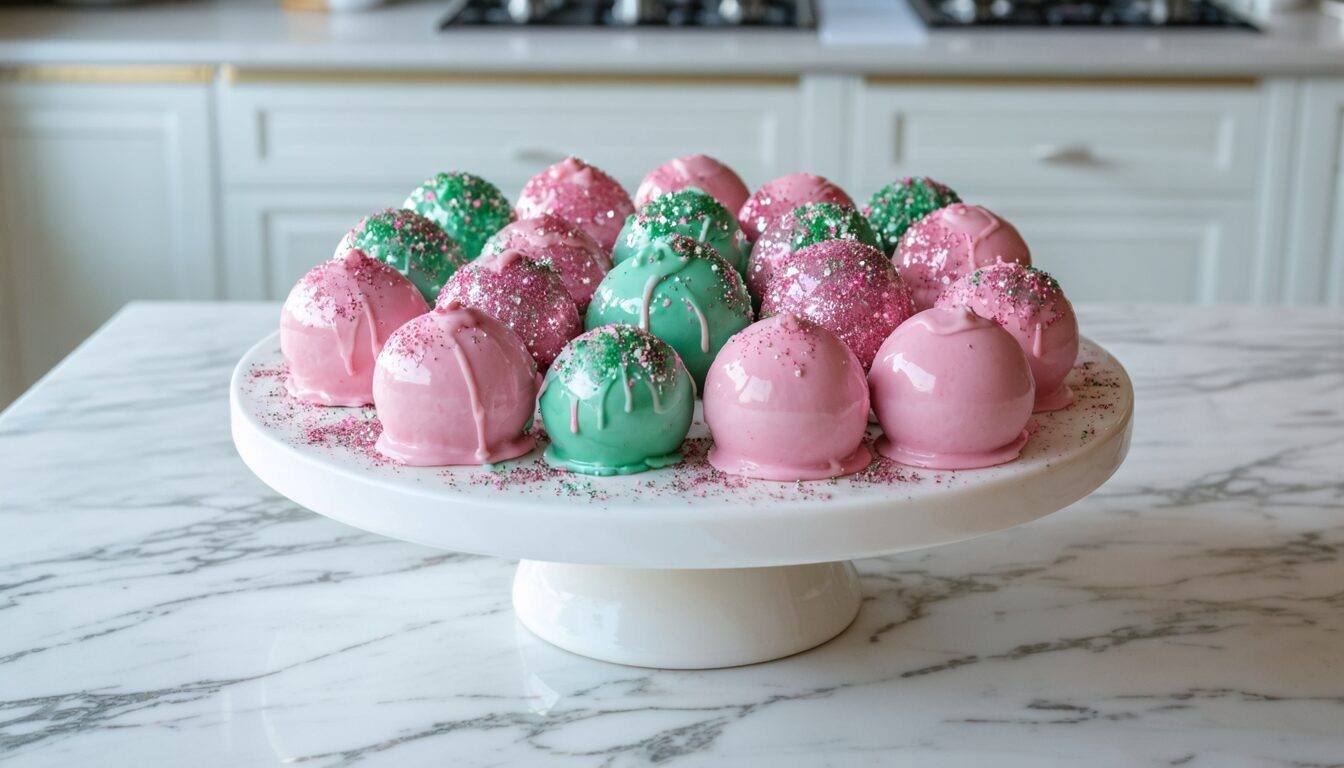 Pink and Green Glittery Fairytale Cake Balls