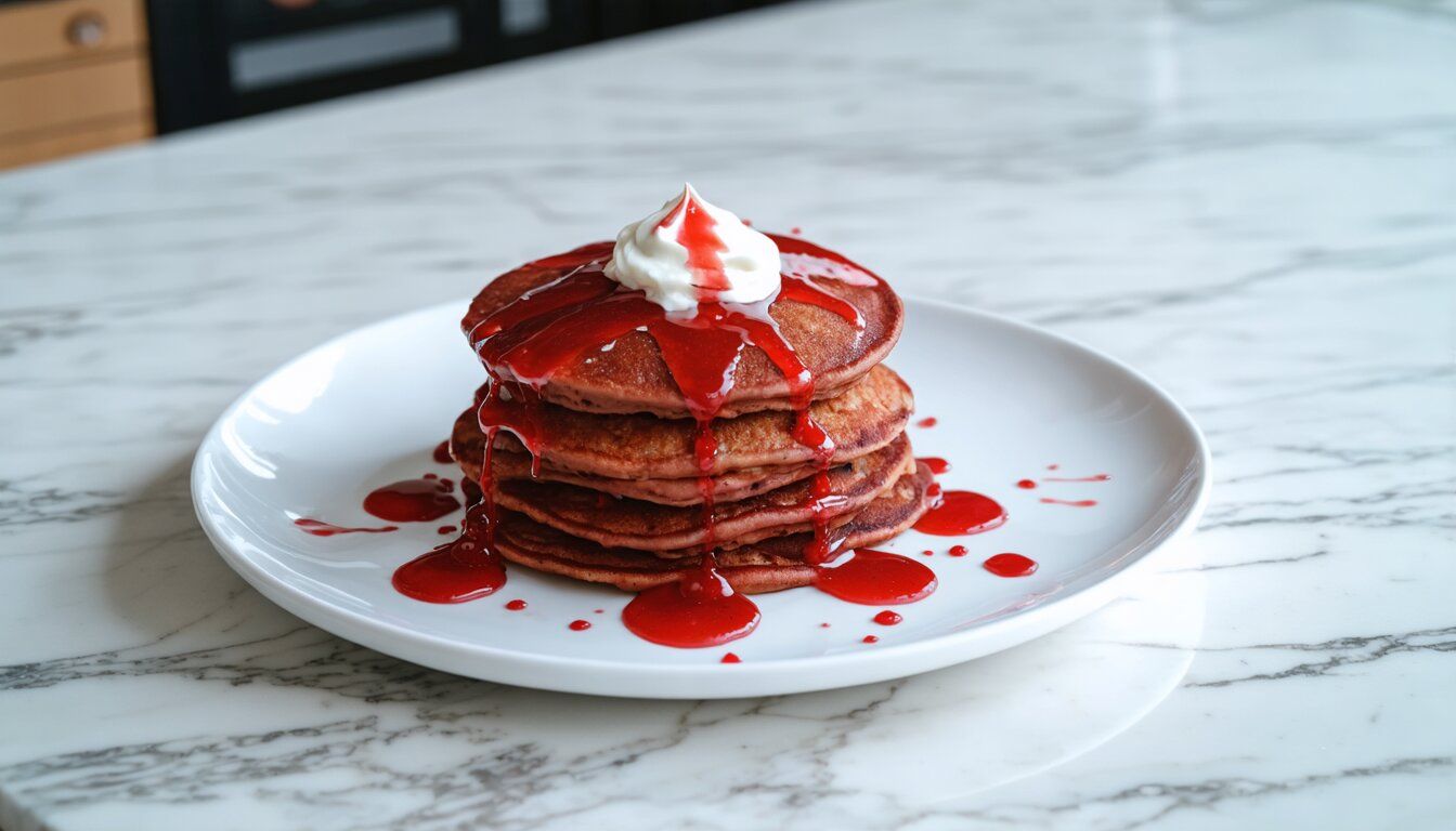 Red Velvet Pancakes with Cream Cheese Drizzle