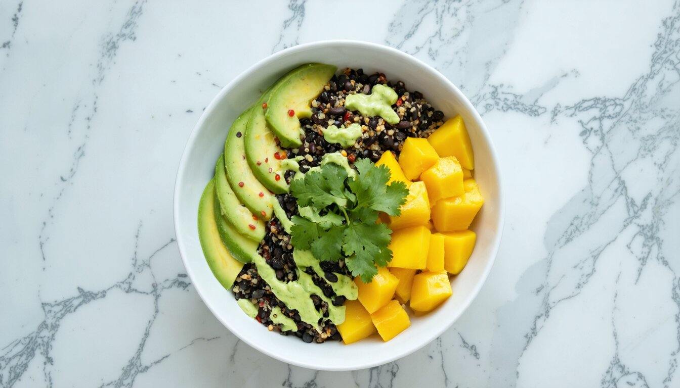 Mango Black Bean Quinoa Bowl with Lime Cilantro Dressing