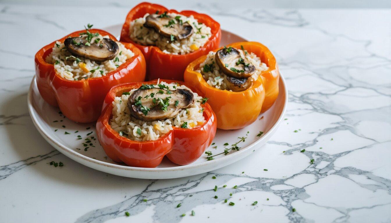 Wild Mushroom and Thyme Risotto-Stuffed Peppers